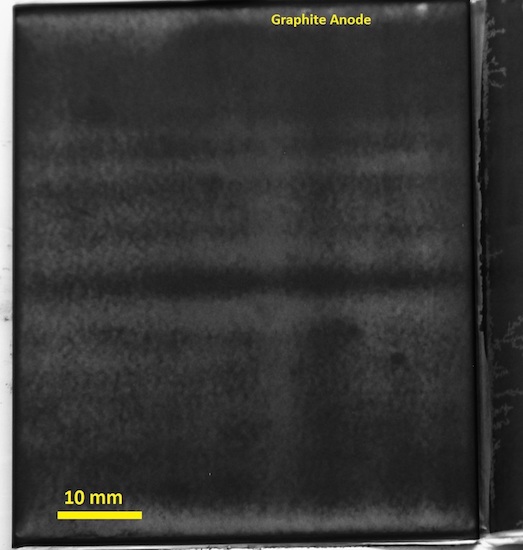 In a good manufacturing environment, the graphite anode layer is uniform in thickness and density. In other words, anywhere along the large anode surface, the graphite maintains the proper balance with the cathode layer that sits on the opposite side.