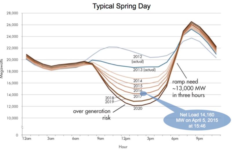 In California, the scale of the duck curve is simply overwhelming. California ISO, the state agency responsible for the flow of electricity across its long-distance power lines, estimates that the differential between the peak and trough in the load curve will exceed 14,000 MW in 2020. To put it in perspective, this is equivalent to seven Diablo Canyon nuclear power plants near San Luis Obispo in central California. In essence, it also highlights the scale of the economic opportunity: Build energy storage systems or build expensive power plants. In future posts, I will cover various topics that come out of this discussion, for example, where do we place this “energy storage” system? what are the requirements on such a system? what technologies are most suitable? …etc.